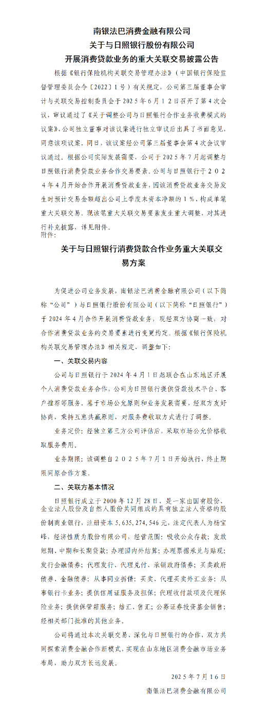 南银法巴消费金融有限公司信息披露