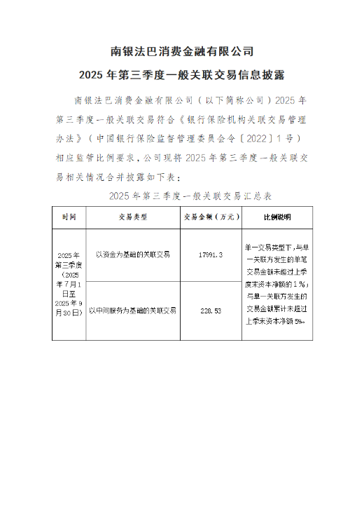 南银法巴消费金融有限公司信息披露